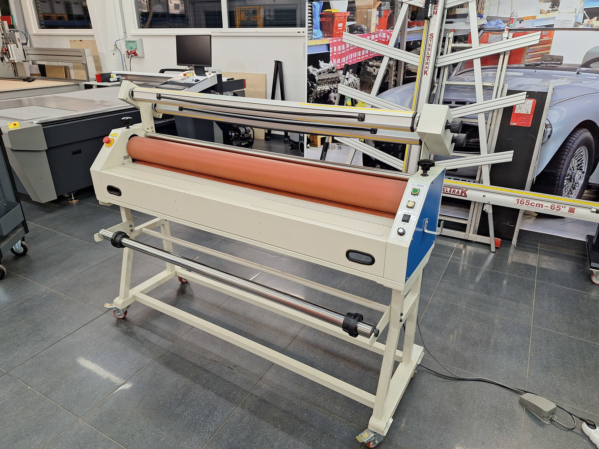 Laminator širine 1600 mm, robusne izvedbe, valjak promjera 130 mm.